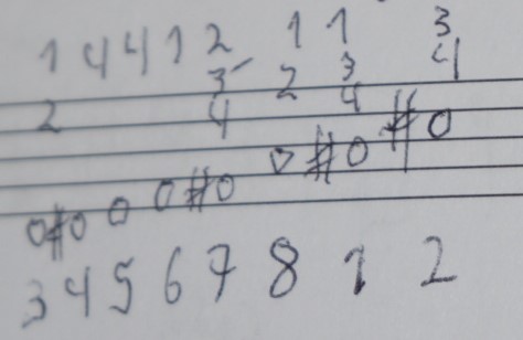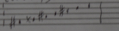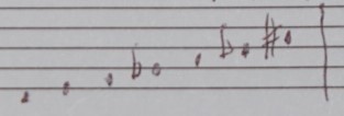 It’s octatonic, so there’s no reason to go wild with odd double-sharps and -flats, is there? The tonal centre on this one is ambiguous (as the numbers above tell you), I will transcribe for now from the starting D: