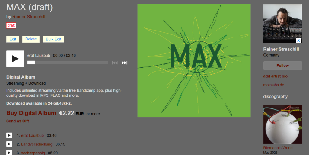 I used the time to put together the pages on this website to document the release. Which included providing links to the individual contributors. And I knew that already, but: I consider myself truly lucky that this heavyweight group of talents had agreed to provide their services for MAX.