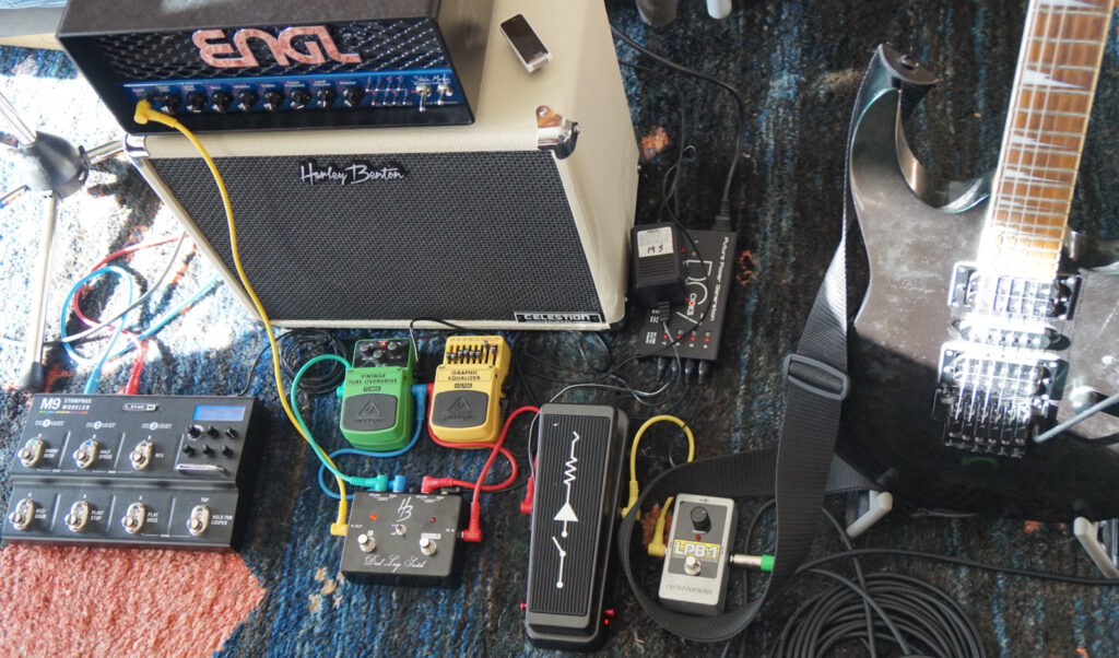 LPB-1 into MC-404 (the pedal) into effects looper having EQ700 (GE7 knockoff) and TO800 into amp. M9 in effects loop.